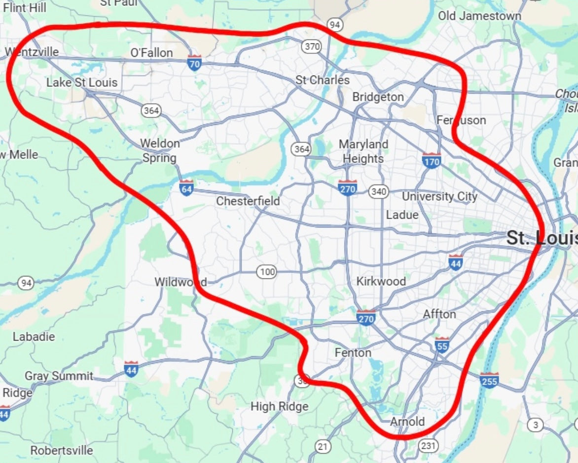 Attention: We currently do not deliver to the following: Troy, Moscow Mills, Warrenton, Flint Hill, Defiance, St Paul, New Melle, Eureka, Imperial, Barnhart, Portage Des Sioux or any part of Illinois. (More cities may be out of our range, please contact us to make sure we deliver to you). Sorry for the inconvenience